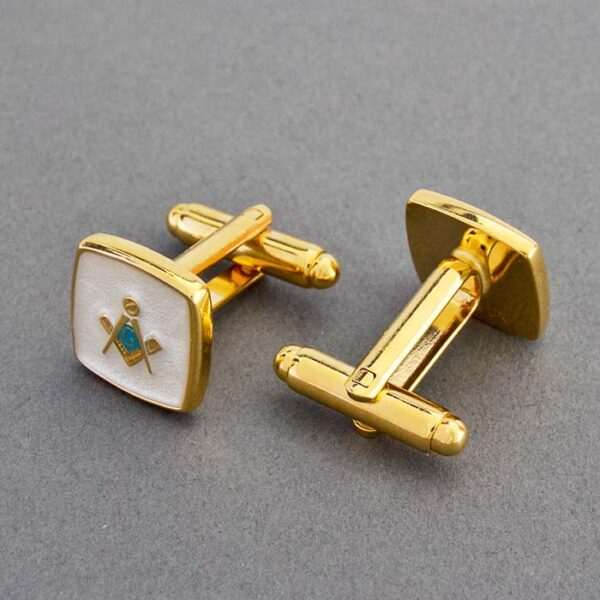 Square Gold, Peral and Turquoise Square and Compass Masonic Cufflinks