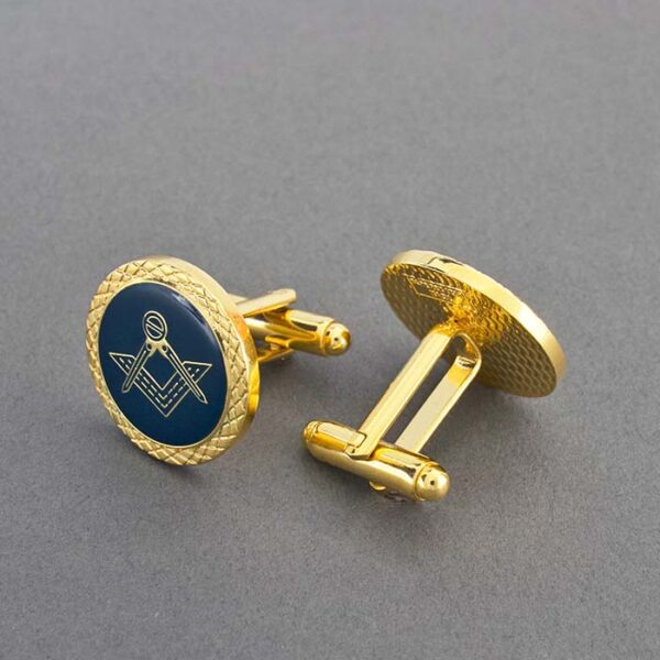 Round Gold and Blue Square and Compass Masonic Cufflinks