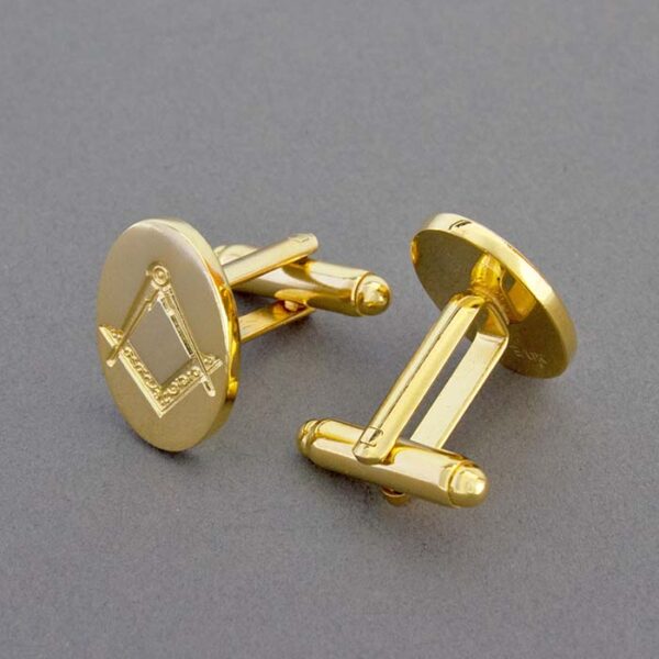 £18.89 *Inc. tax=£22.67*Gold Engraved Square & Compass Oval Cufflinks.